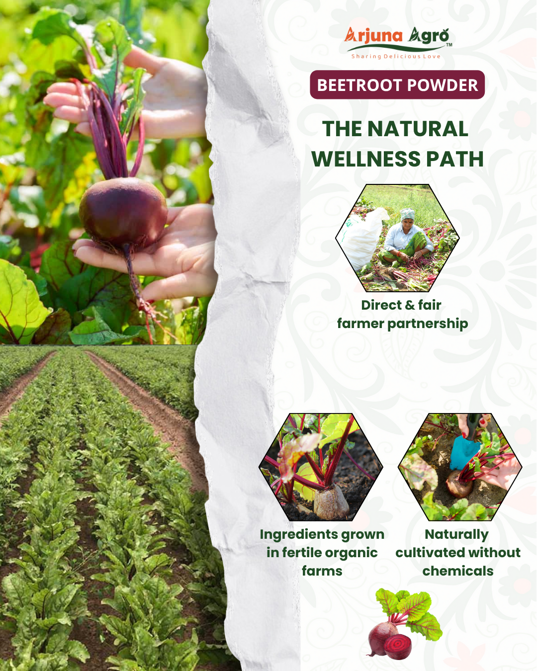 Naturally power your performance with Beetroot Powder - a rich source of nitrates, iron, and folate. Arjuna Agro’s Beetroot Powder helps boost stamina, improve blood circulation, and promote healthy skin. Perfect for smoothies, energy drinks, or baking blends.