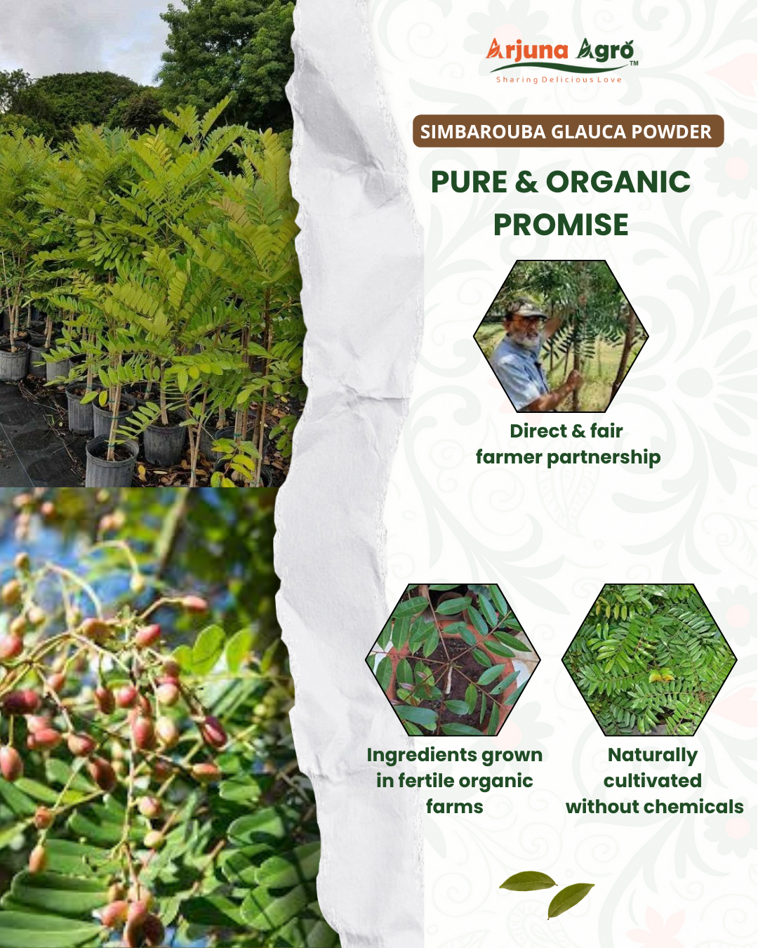 Discover nature’s hidden remedy - Simarouba Powder. Known for its anti-inflammatory and digestive properties, Simarouba has been valued in traditional medicine for balancing the body naturally. Arjuna Agro’s pure, finely milled Simarouba Powder ensures therapeutic potency for both wellness and nutraceutical applications.